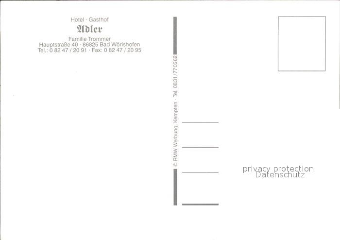 71928111 Bad Woerishofen Hotel Gasthof Adler postalisch nicht gelaufen Erhaltung siehe scans KatCode: 11110009778116