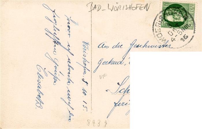 73939056 alte Postkarte Bad Woerishofen Hotel Pension Sproll postalisch gelaufen Erhaltung siehe scans [FriedD77] KatCode: 11110009778116