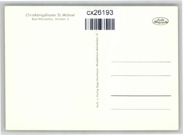 30826932 Bad Woerishofen hristkoenigskloster St Michael * postalisch nicht gelaufen KatCode: 11110009778116