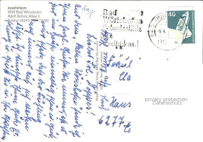 alte Postkarte Bad Woerishofen Josefsheim postalisch gelaufen Erhaltung siehe scans