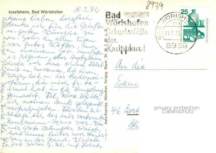 72636115 alte Postkarte Bad Woerishofen Josefsheim Fliegeraufnahme postalisch gelaufen Erhaltung siehe scans [WerneD78] KatCode: 11110009778116