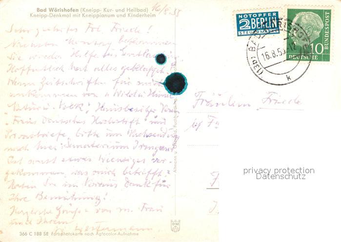 73207981 alte Postkarte Bad Woerishofen Kneipp Denkmal Kneippianum Kinderheim postalisch gelaufen Erhaltung siehe scans [KathaD81] KatCode: 11110009778116