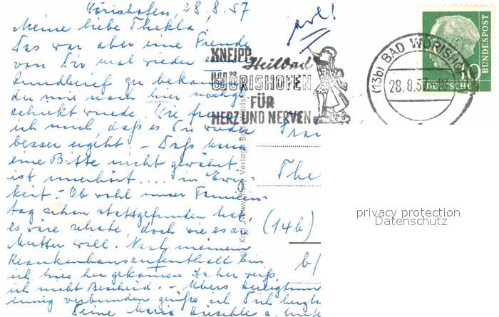 72757233 alte Postkarte Bad Woerishofen Kneipp Denkmal Musikpavillon Wassertreten Wahrzeichen Waldsee Kurhaus Kneippianum Kuranwendung postalisch gelaufen Erhaltung siehe scans [FriedD77] KatCode: 11110009778116
