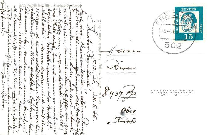 73804839 alte Postkarte Bad Woerishofen Kneipp Denkmal Park postalisch gelaufen Erhaltung siehe scans [FriedD77] KatCode: 11110009778116