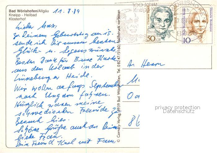 73100081 alte Postkarte Bad Woerishofen Kneipp Heilbad Klosterhof postalisch gelaufen Erhaltung siehe scans [WerneD78] KatCode: 11110009778116