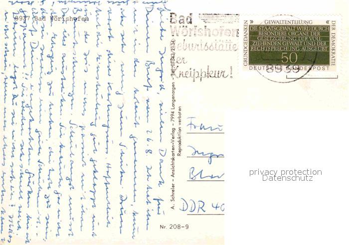 72616508 alte Postkarte Bad Woerishofen Kneipp Kur Heilbad Wassertreten Kurhaus postalisch gelaufen Erhaltung siehe scans [FriedD77] KatCode: 11110009778116