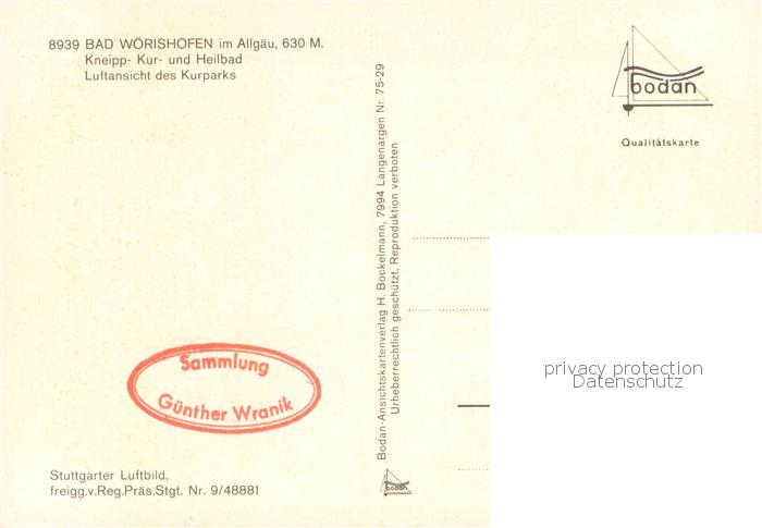 73754953 Bad Woerishofen Kneipp Kur und Heilbad Kurpark Fliegeraufnahme postalisch nicht gelaufen Erhaltung siehe scans [FriedD77] KatCode: 11110009778116