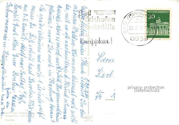 74099664 alte Postkarte BAD WoeRISHOFEN Kneipp Kur und Heilbad Waldsee postalisch gelaufen Erhaltung siehe scans [WerneD78] KatCode: 11110009778116