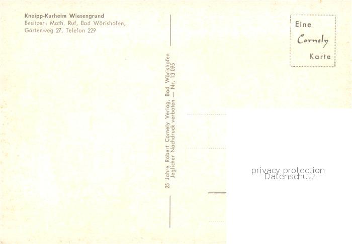 73866276 Bad Woerishofen Kneipp Kurheim Wiesengrund postalisch nicht gelaufen Erhaltung siehe scans [WerneD78] KatCode: 11110009778116