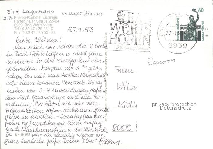 72241547 alte Postkarte Bad Woerishofen Kneipp Kurhotel Eichinger Restaurant Hallenbad postalisch gelaufen Erhaltung siehe scans KatCode: 11110009778116