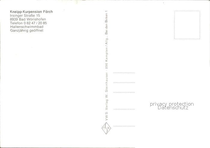 72332125 Bad Woerishofen Kneipp Kurhotel Pension Foerch Restaurant postalisch nicht gelaufen Erhaltung siehe scans KatCode: 11110009778116