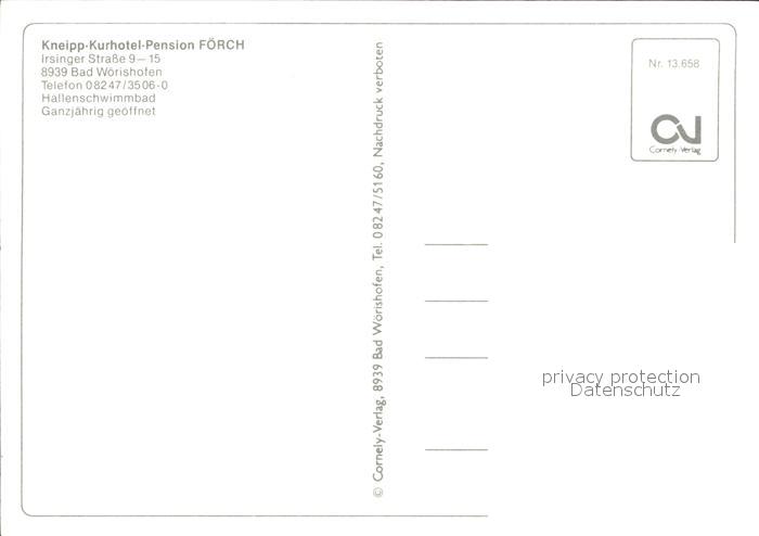 72346964 Bad Woerishofen Kneipp Kurhotel Pension Foerch Restaurant postalisch nicht gelaufen Erhaltung siehe scans KatCode: 11110009778116
