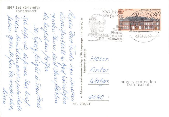72470654 alte Postkarte Bad Woerishofen Kneipp Kurort Kurpark Kurhaus Kneippstrasse Stadtbad Freibad postalisch gelaufen Erhaltung siehe scans KatCode: 11110009778116