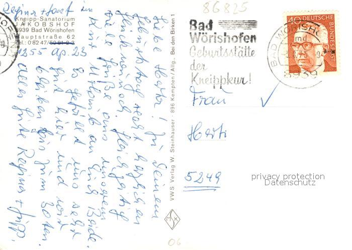 73323269 alte Postkarte Bad Woerishofen Kneipp Sanatorium Jakobshof postalisch gelaufen Erhaltung siehe scans [FriedD77] KatCode: 11110009778116