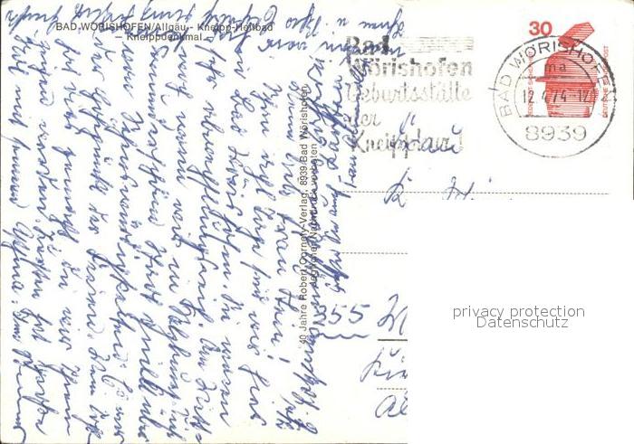 72134945 alte Postkarte Bad Woerishofen Kneippdenkmal postalisch gelaufen Erhaltung siehe scans KatCode: 11110009778116
