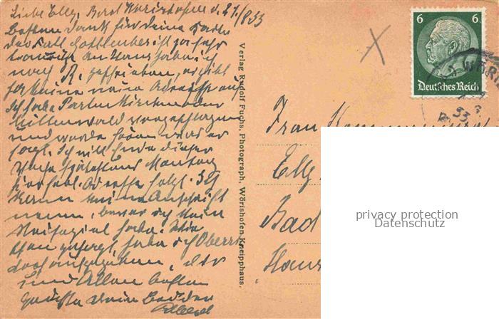 74035311 alte Postkarte BAD WoeRISHOFEN Kneippdenkmalsplatz postalisch gelaufen Erhaltung siehe scans [FriedD77] KatCode: 11110009778116