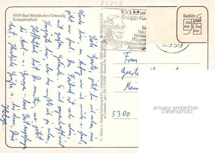 72804929 alte Postkarte Bad Woerishofen Kneippheilbad Fliegeraufnahme postalisch gelaufen Erhaltung siehe scans [FriedD77] KatCode: 11110009778116