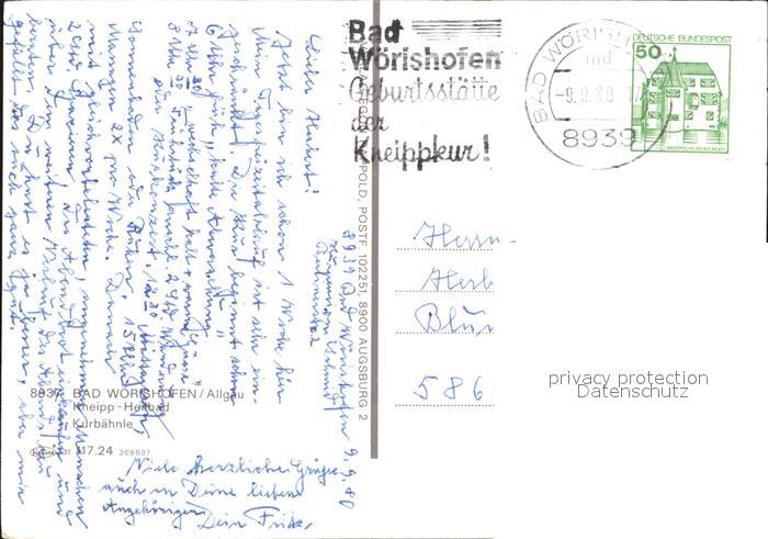 72582053 alte Postkarte Bad Woerishofen Kneippheilbad Kurbaehnle postalisch gelaufen Erhaltung siehe scans [WerneD78] KatCode: 11110009778116