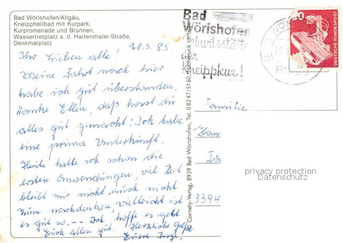 72844374 alte Postkarte Bad Woerishofen Kneippheilbad Kurpark Kurpromenade Brunnen Wassertreten Denkmalplatz Alpenblick postalisch gelaufen Erhaltung siehe scans [FriedD77] KatCode: 11110009778116
