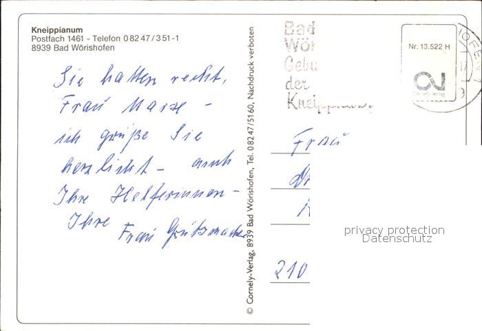 72465968 alte Postkarte Bad Woerishofen Kneippianum postalisch gelaufen Erhaltung siehe scans KatCode: 11110009778116
