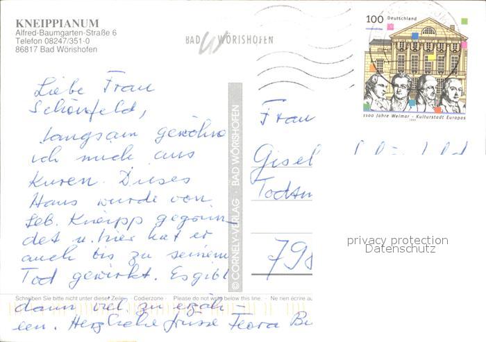 72364908 alte Postkarte Bad Woerishofen Kneippianum postalisch gelaufen Erhaltung siehe scans KatCode: 11110009778116