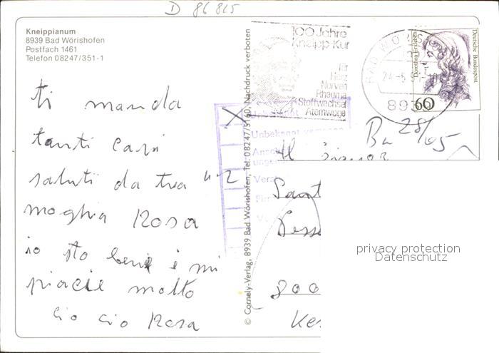 71974234 alte Postkarte Bad Woerishofen Kneippianum postalisch gelaufen Erhaltung siehe scans KatCode: 11110009778116