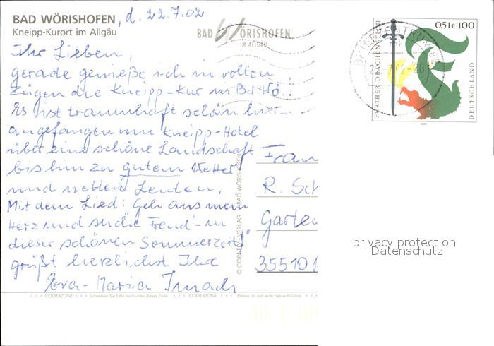 72429262 alte Postkarte Bad Woerishofen Kneippkurort Kurklinik Park postalisch gelaufen Erhaltung siehe scans KatCode: 11110009778116