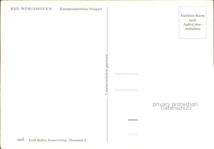 72113348 Bad Woerishofen Kneippsanatorium Irmgard postalisch nicht gelaufen Erhaltung siehe scans KatCode: 11110009778116