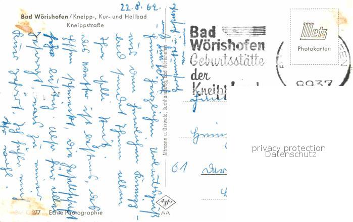 72791497 alte Postkarte Bad Woerishofen Kneippstrasse postalisch gelaufen Erhaltung siehe scans [AndreD76] KatCode: 11110009778116
