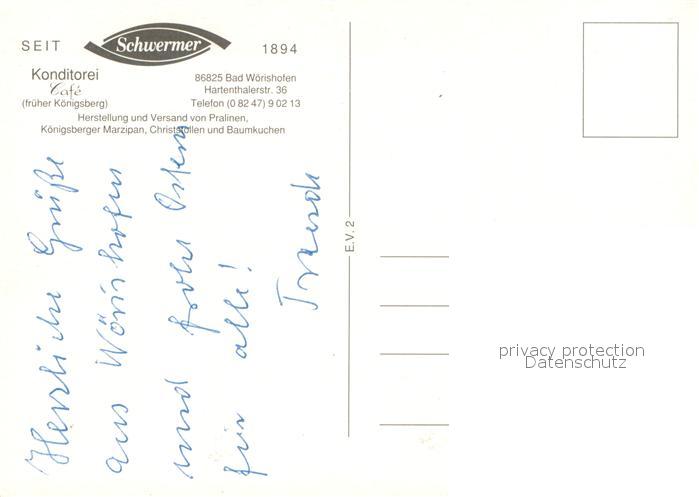 73714714 Bad Woerishofen Konditorei-Cafe Schwermer Aussenansicht mit Terrasse postalisch nicht gelaufen Erhaltung siehe scans [LiesaD40] KatCode: 11110009778116