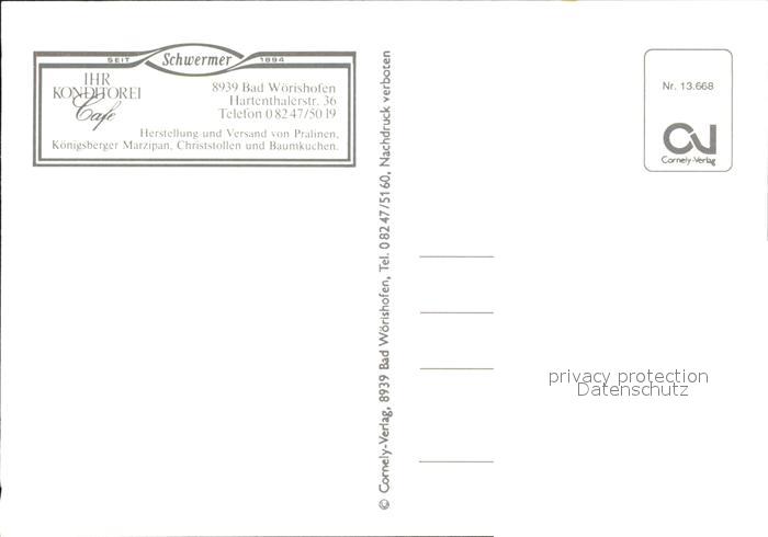 72514994 Bad Woerishofen Konditorei Cafe Schwermer Terrasse postalisch nicht gelaufen Erhaltung siehe scans KatCode: 11110009778116