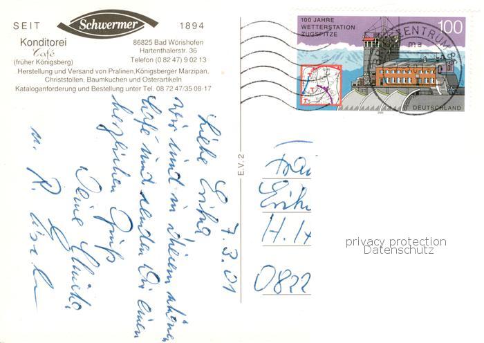73788210 alte Postkarte Bad Woerishofen Konditorei Cafe Schwermer Terrasse postalisch gelaufen Erhaltung siehe scans [FriedD77] KatCode: 11110009778116