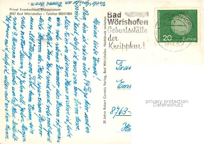 73090685 alte Postkarte Bad Woerishofen Krankenhaus Kneippianum postalisch gelaufen Erhaltung siehe scans [KathaD81] KatCode: 11110009778116