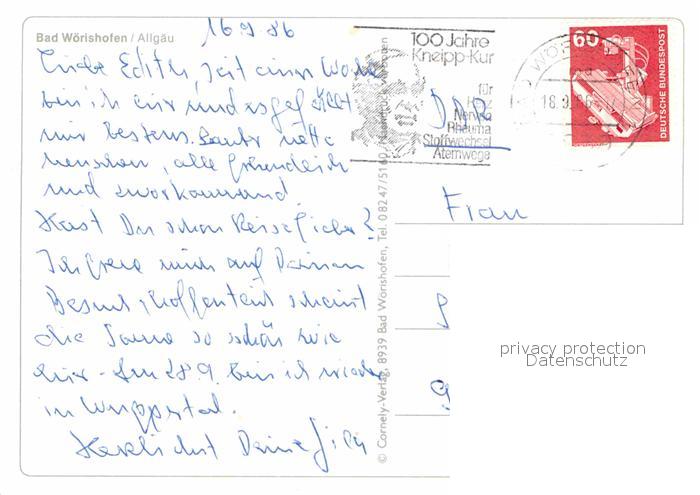 72654359 alte Postkarte Bad Woerishofen Kuranlagen Ortsansichten postalisch gelaufen Erhaltung siehe scans [WerneD78] KatCode: 11110009778116