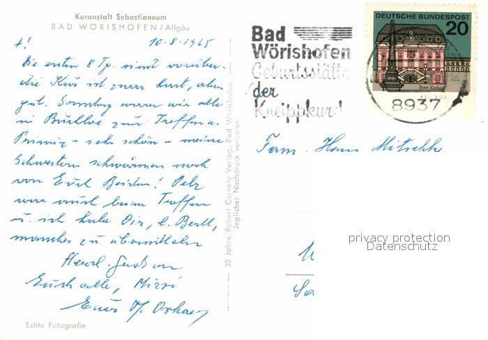 72821358 alte Postkarte Bad Woerishofen Kuranstalt Sebastianeum postalisch gelaufen Erhaltung siehe scans [FriedD77] KatCode: 11110009778116