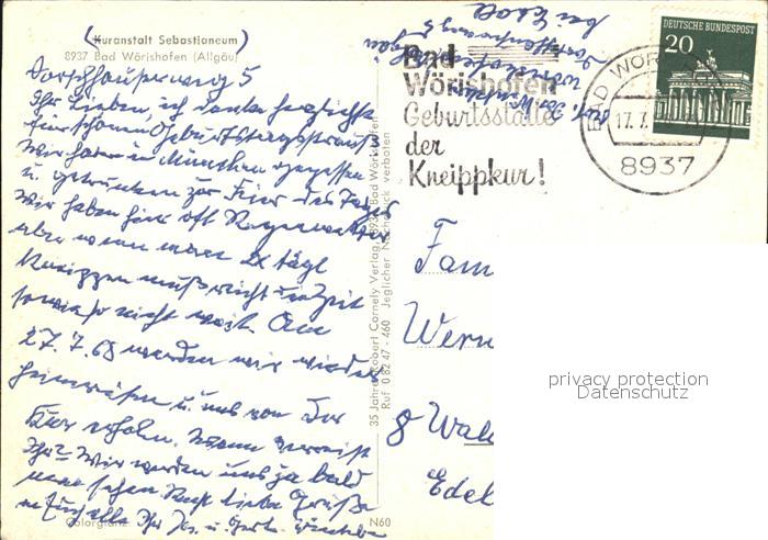 72607650 alte Postkarte Bad Woerishofen Kuranstalt Sebastianeum postalisch gelaufen Erhaltung siehe scans [LiesaD40] KatCode: 11110009778116