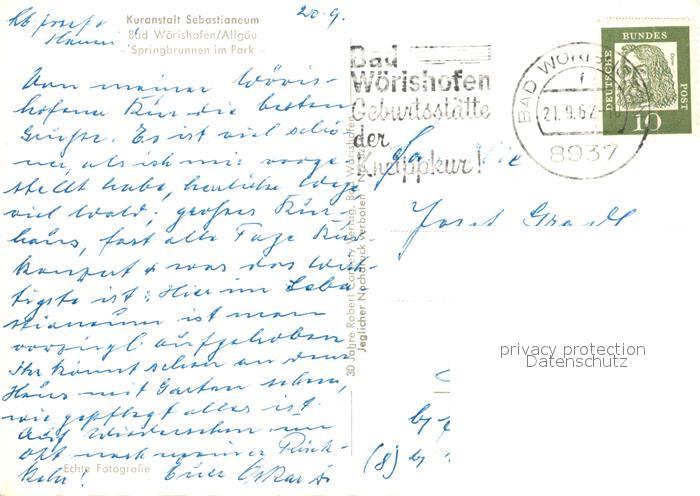 73038364 alte Postkarte Bad Woerishofen Kuranstalt Sebastianeum Springbrunnen Park postalisch gelaufen Erhaltung siehe scans [KathaD81] KatCode: 11110009778116