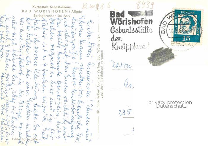 72796049 alte Postkarte Bad Woerishofen Kuranstalt Sebastianeum Springbrunnen postalisch gelaufen Erhaltung siehe scans [AndreD76] KatCode: 11110009778116