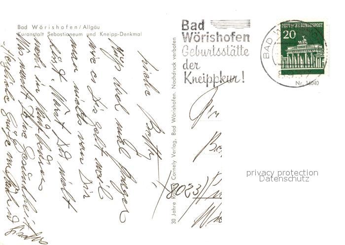 73163435 alte Postkarte Bad Woerishofen Kuranstalt Sebastianeum und Kneipp Denkmal postalisch gelaufen Erhaltung siehe scans [WerneD78] KatCode: 11110009778116