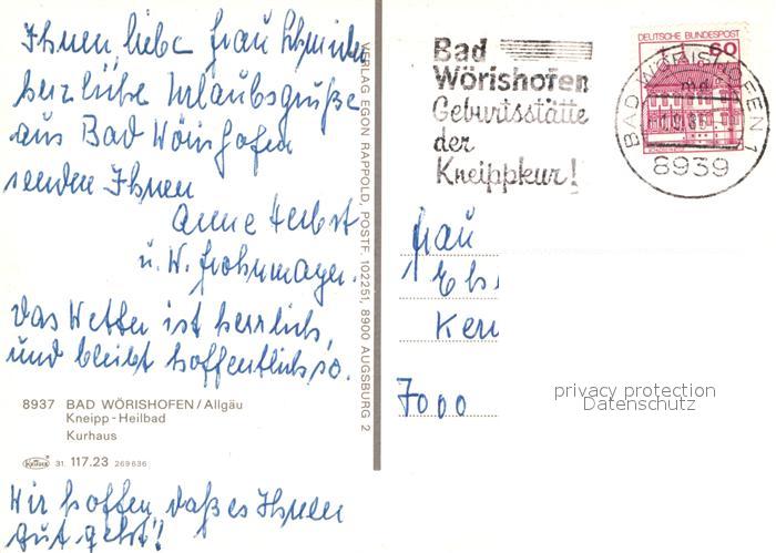 73017292 alte Postkarte Bad Woerishofen Kurhaus postalisch gelaufen Erhaltung siehe scans [NatalD47] KatCode: 11110009778116