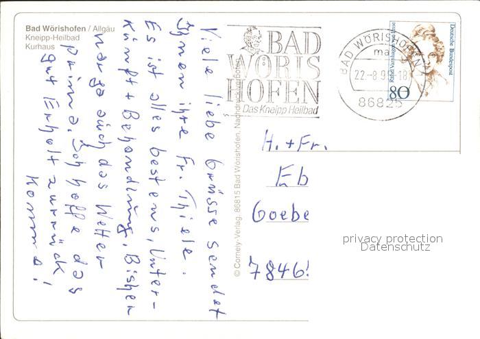 72393554 alte Postkarte Bad Woerishofen Kurhaus postalisch gelaufen Erhaltung siehe scans KatCode: 11110009778116