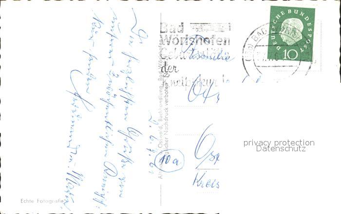 72178613 alte Postkarte Bad Woerishofen Kurhaus Kurpromenade Wassertretplatz Elsterweg Waldsee Kurpark postalisch gelaufen Erhaltung siehe scans KatCode: 11110009778116