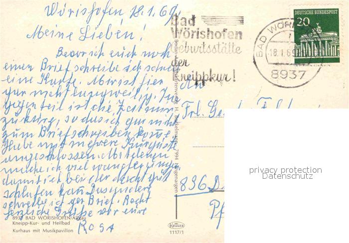 72668558 alte Postkarte Bad Woerishofen Kurhaus Musikpavillon postalisch gelaufen Erhaltung siehe scans [AndreD76] KatCode: 11110009778116