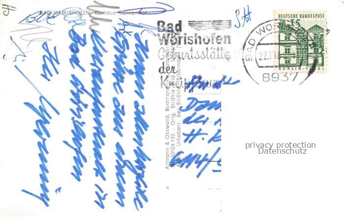 74023094 alte Postkarte BAD WoeRISHOFEN Kurhaus Sonnenhof postalisch gelaufen Erhaltung siehe scans [WerneD78] KatCode: 11110009778116