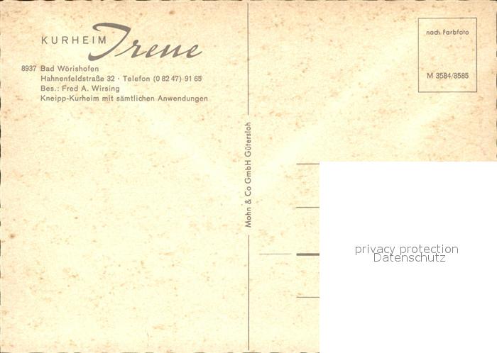 72494878 Bad Woerishofen Kurheim Irene postalisch nicht gelaufen Erhaltung siehe scans KatCode: 11110009778116