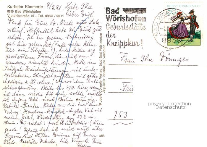 72682021 alte Postkarte Bad Woerishofen Kurheim Kimmerle postalisch gelaufen Erhaltung siehe scans [WerneD78] KatCode: 11110009778116
