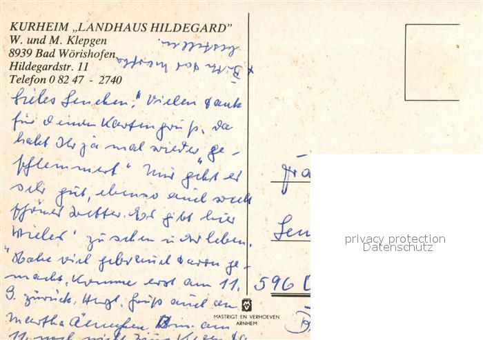 72937225 Bad Woerishofen Kurheim Landhaus Hildegard postalisch nicht gelaufen Erhaltung siehe scans [LiesaD40] KatCode: 11110009778116