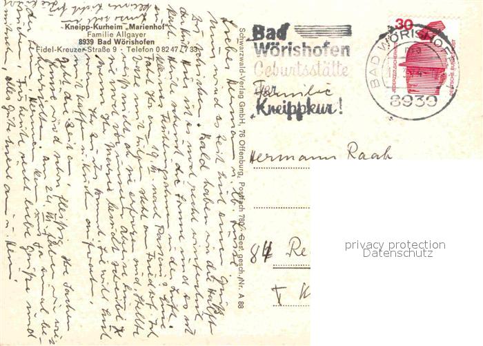 72900023 alte Postkarte Bad Woerishofen Kurheim Marienhof postalisch gelaufen Erhaltung siehe scans [NatalD47] KatCode: 11110009778116
