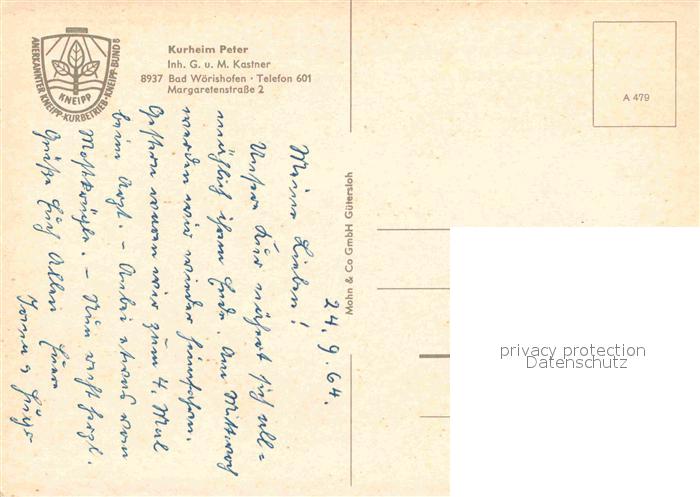 72899978 Bad Woerishofen Kurheim Peter postalisch nicht gelaufen Erhaltung siehe scans [NatalD47] KatCode: 11110009778116