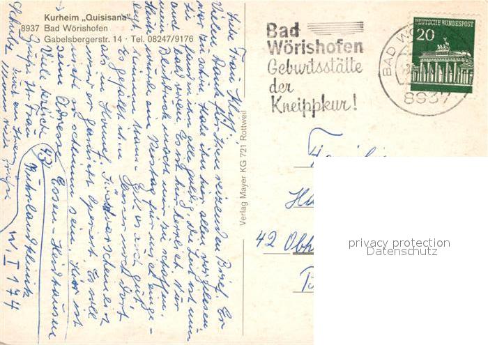 72966930 alte Postkarte Bad Woerishofen Kurheim Quisisana postalisch gelaufen Erhaltung siehe scans [LiesaD40] KatCode: 11110009778116
